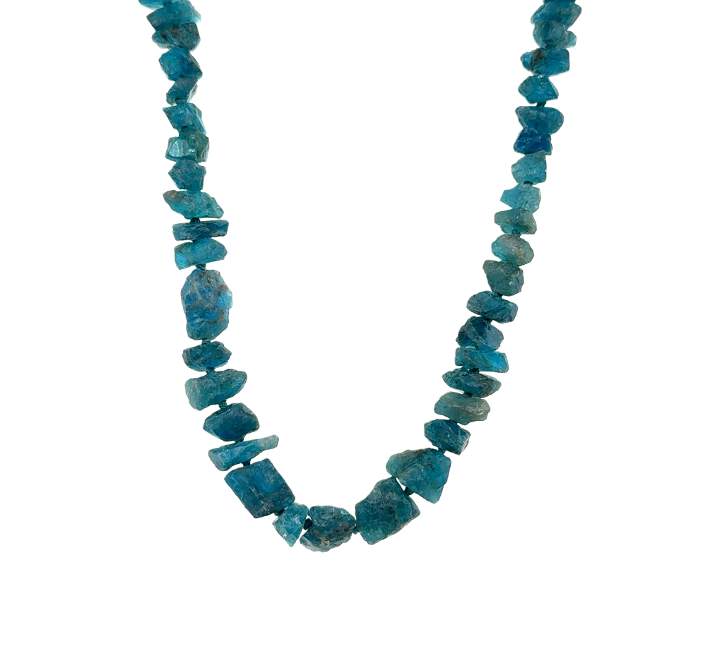Rough apatite necklace with a medium sterling silver S hook style clasp.