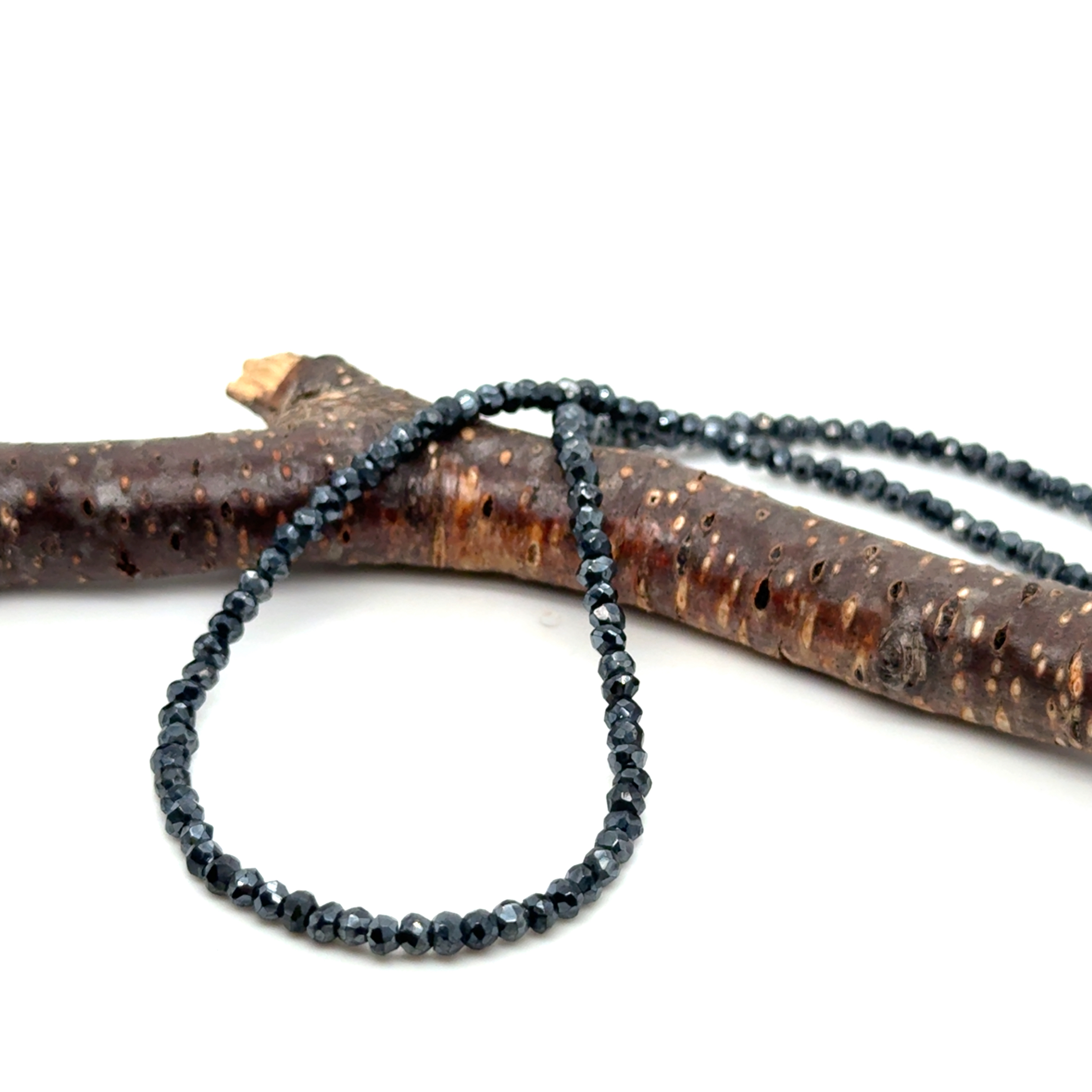 Round faceted gray spinel delicate necklace with a sterling silver lobster claw clasp.