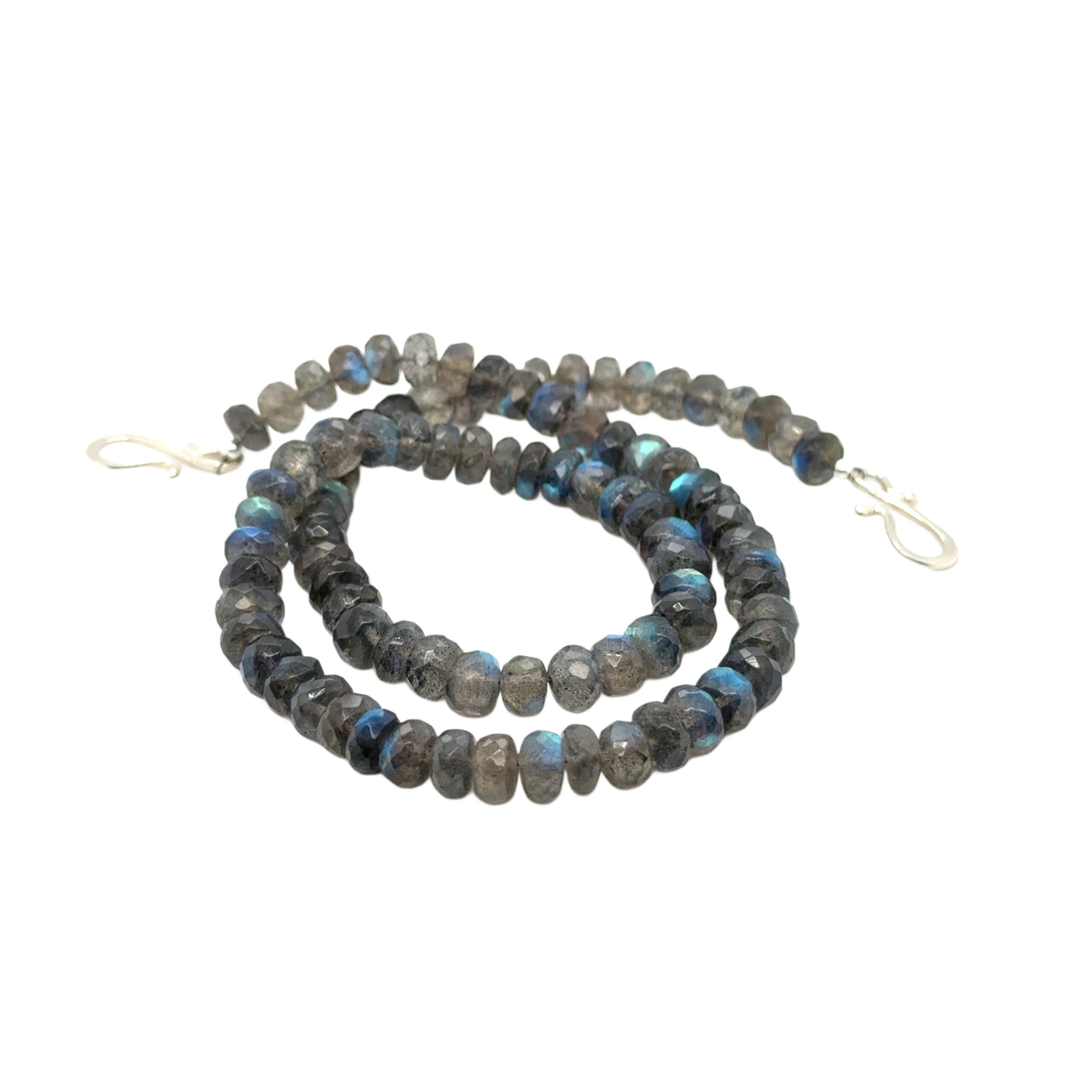 Faceted labradorite necklace with a sterling silver S hook style clasp.