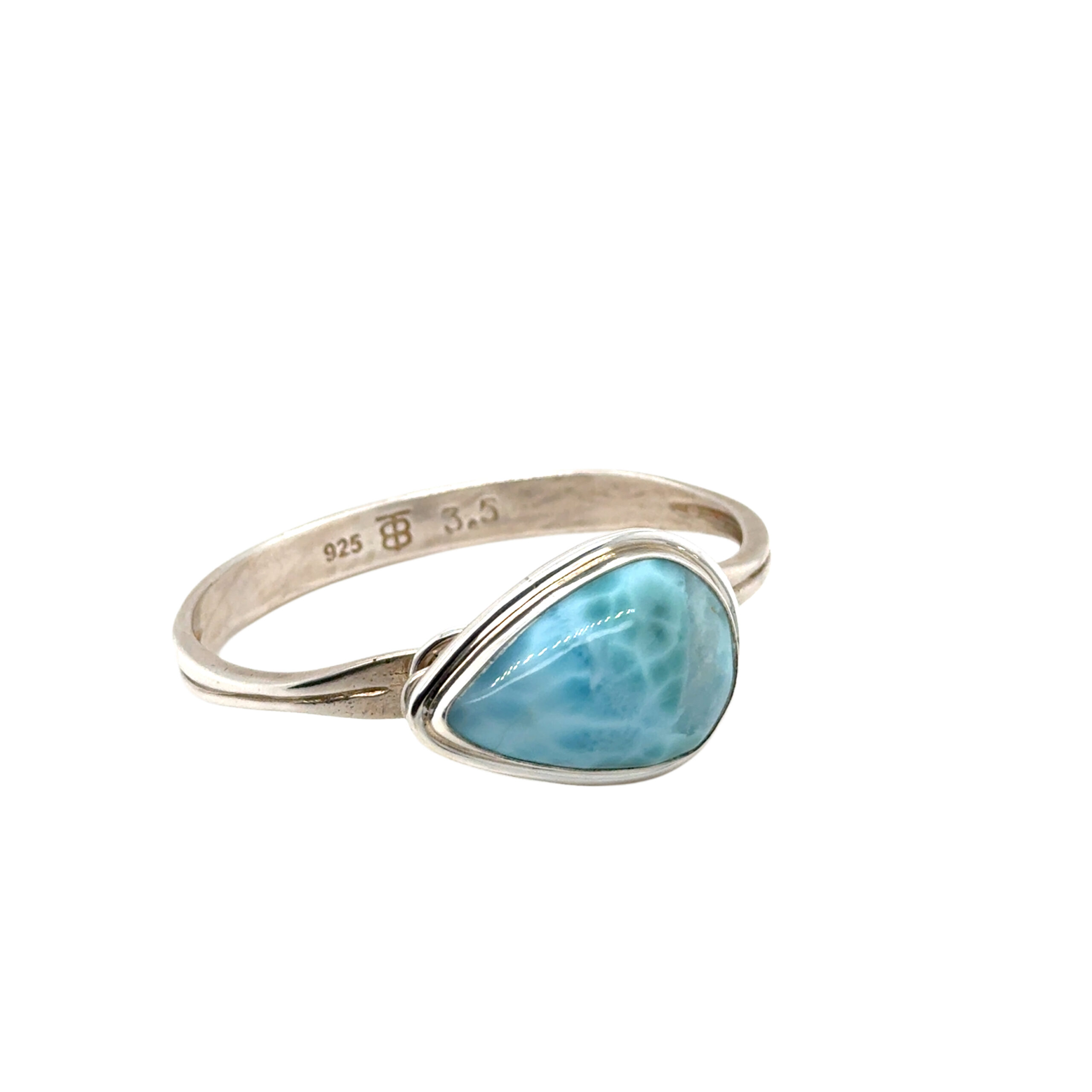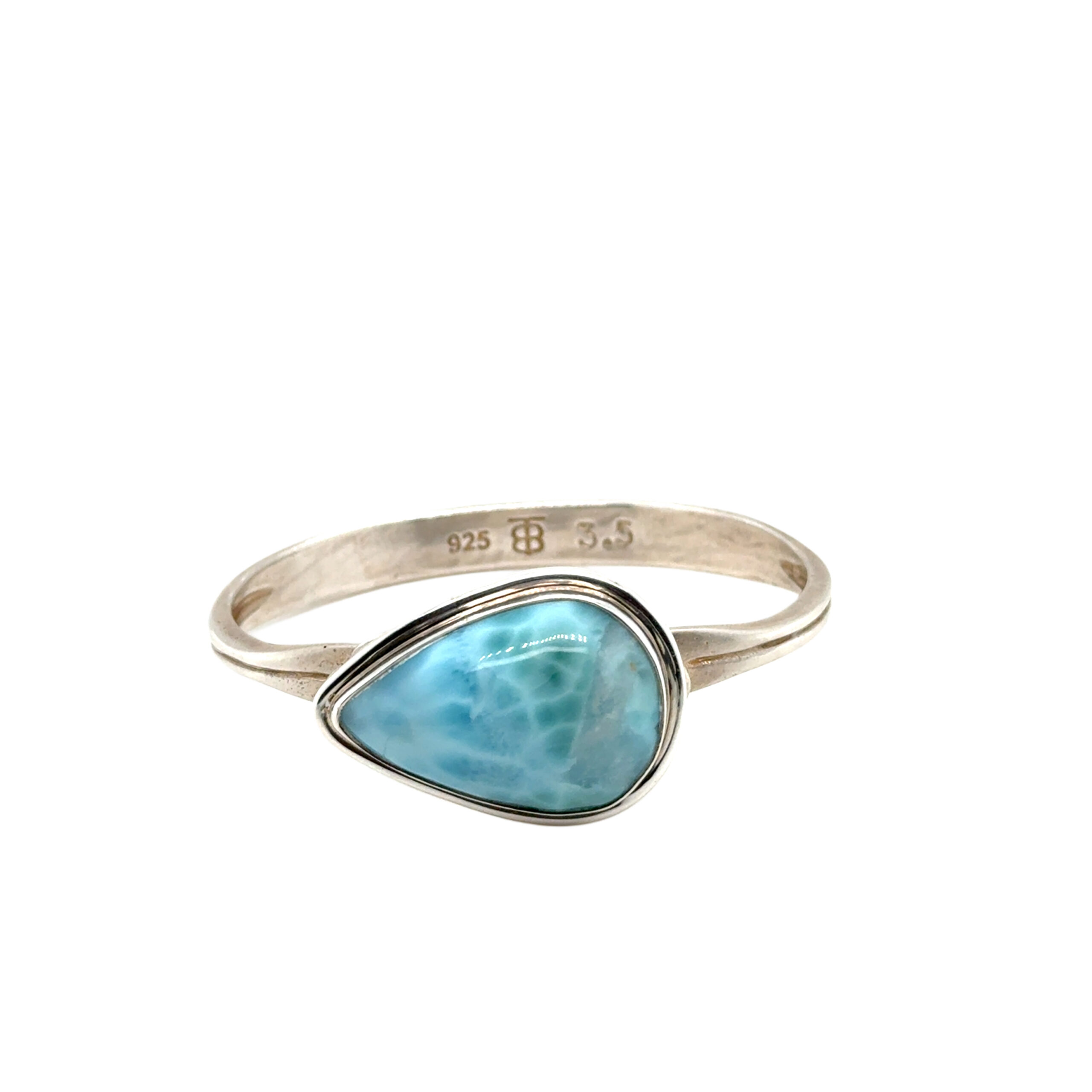 Pear shape Larimar bracelet top set in sterling silver.