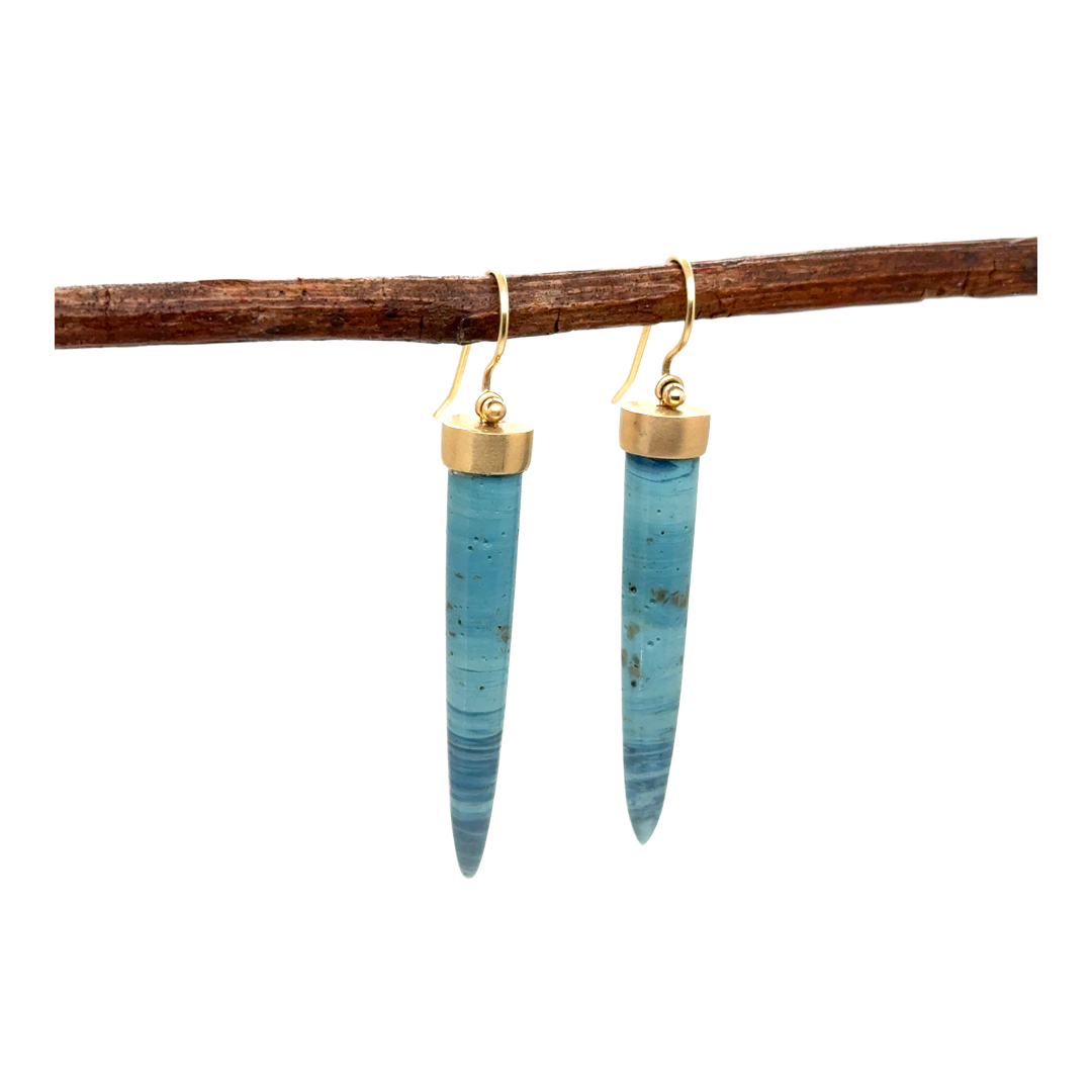 Cone shaped Leland Blue earrings with 14k yellow gold caps and 14k yellow gold French style wires.