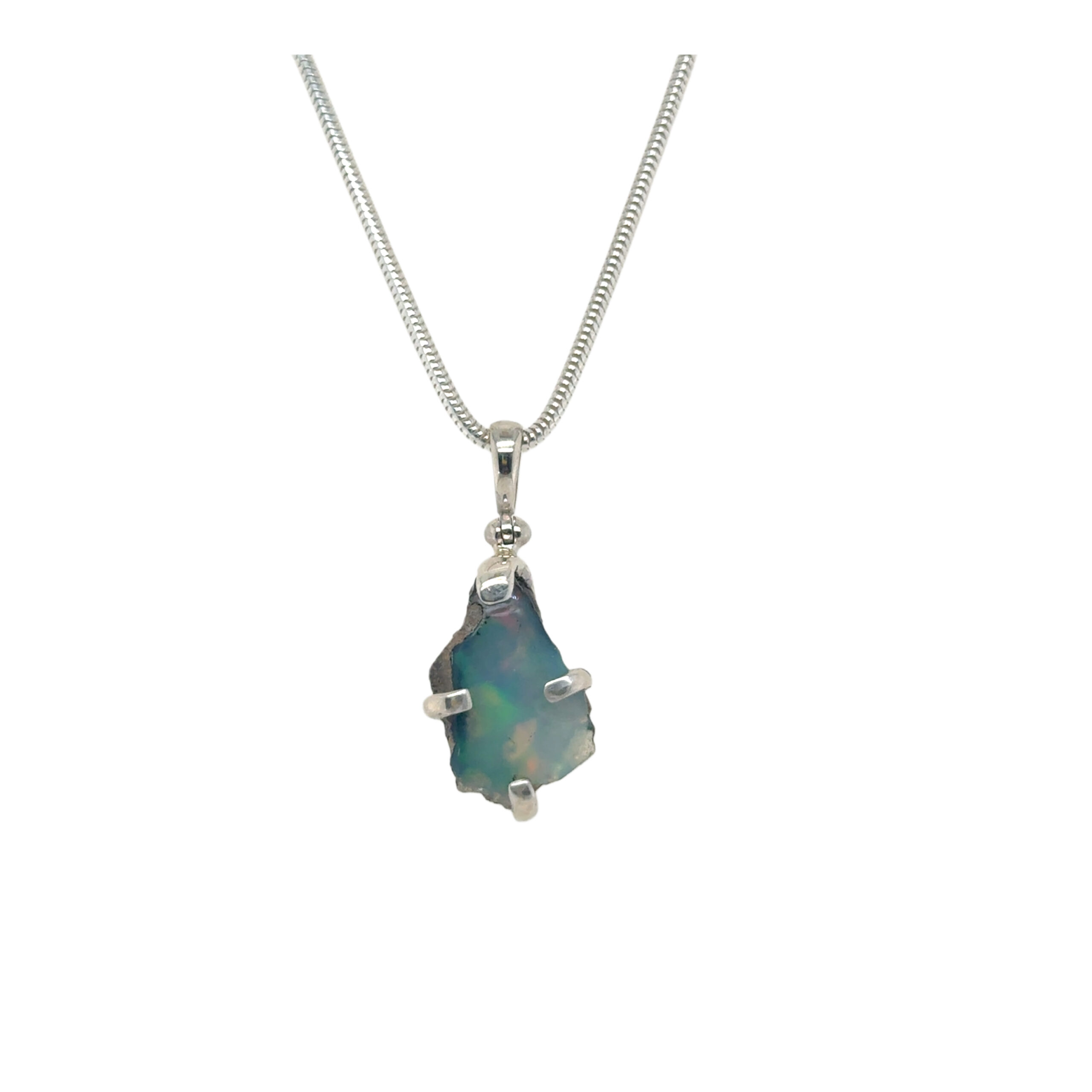 Opal pendant set in a sterling silver wrapped bezel and bail.