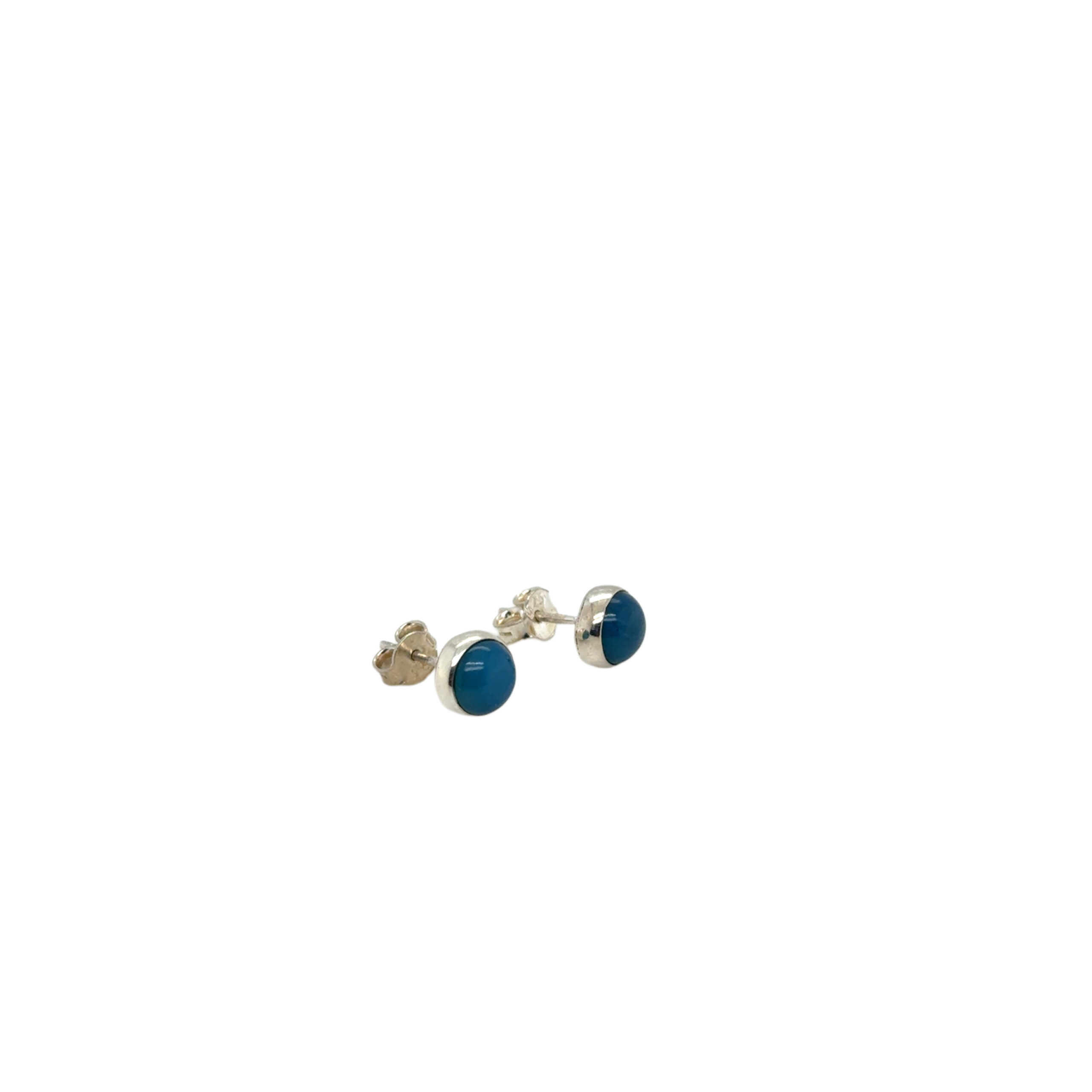 Round Swedish blue stud earrings set in a sterling silver bezel.